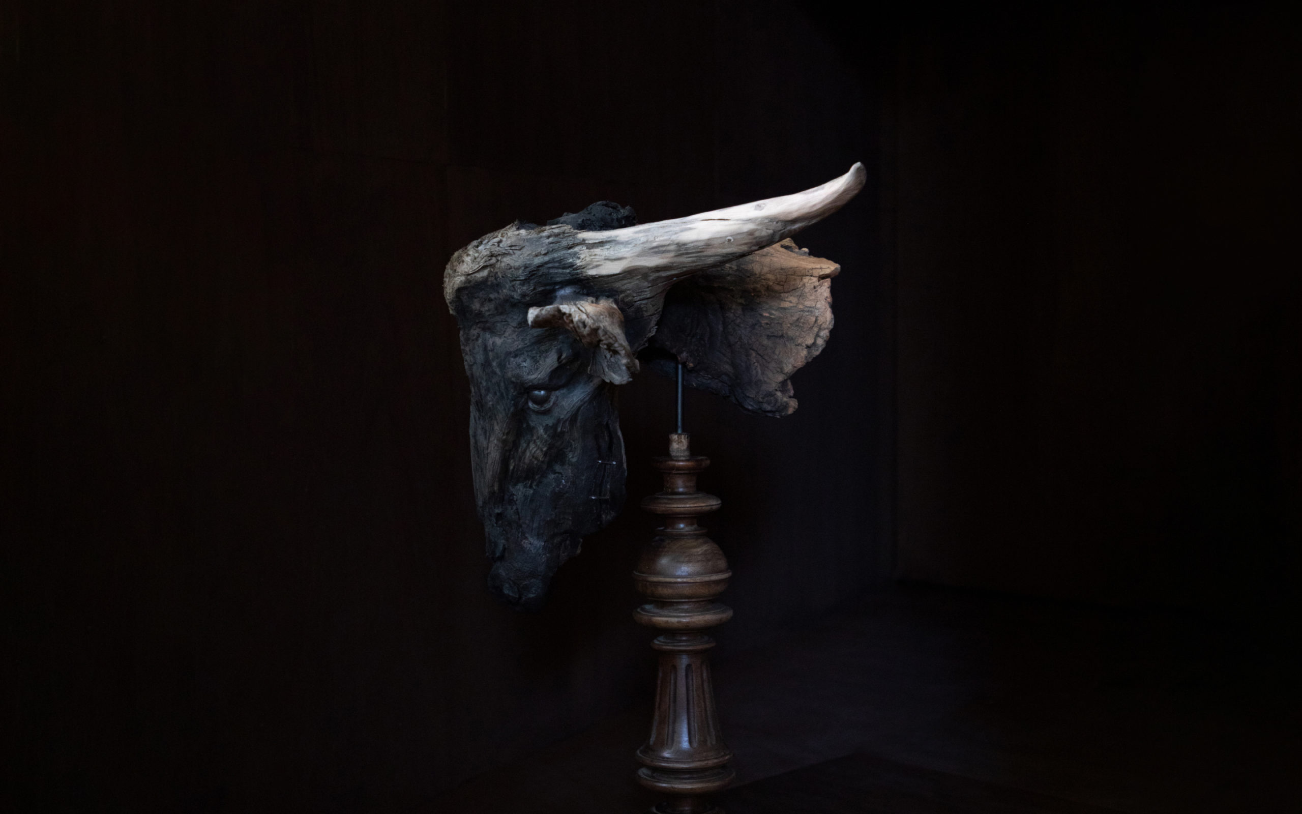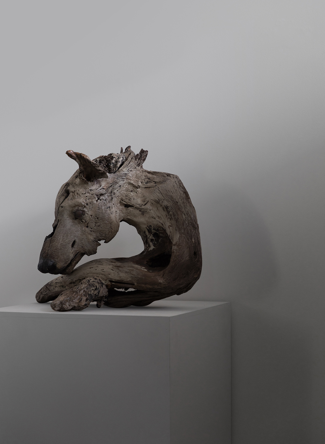 風化や経年による痕跡が残る素材で制作された作品は、生と死のあいだを行き交うようなニュートラルな佇まいをもち、静謐でありながらも確かな引力を放ちます。